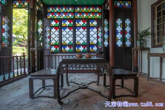 外緣呈三角形,繞以青磚圍墻,在有限的空間內融入了多種造園手法。